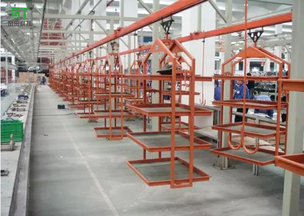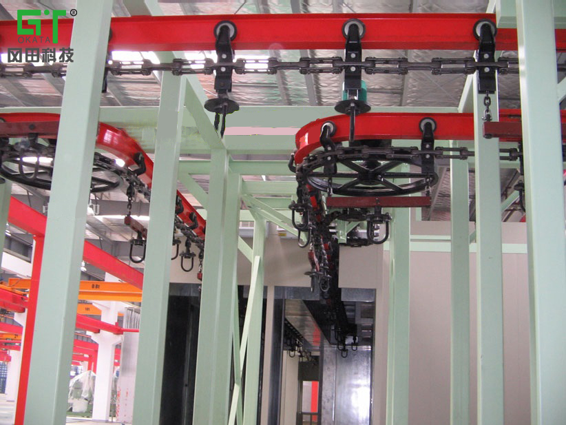懸掛流水線是一種三維空間閉環(huán)連續(xù)輸送系統(tǒng),適用于車間內(nèi)部和車間之間成件物品的自動(dòng)化輸送。根據(jù)輸送物料的方法,可分為通用和輕型的牽引式懸掛輸送、通用積放式的推勢(shì)懸掛輸送。